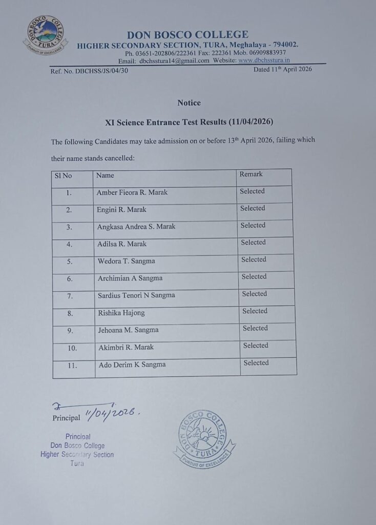 XI Arts Entrance Test Results (11/04/2026).